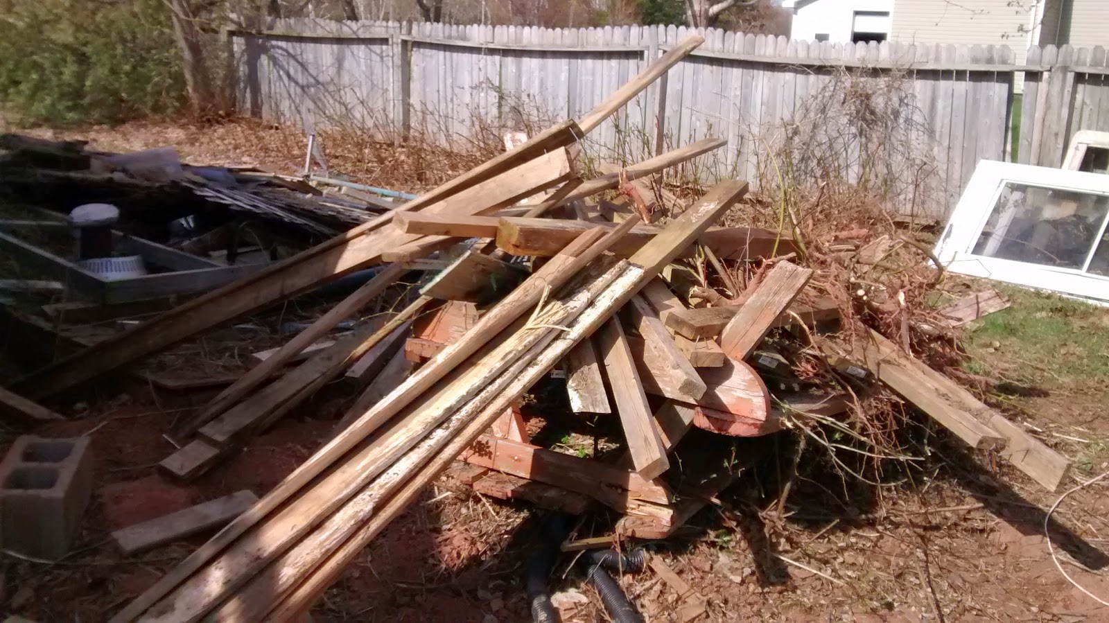 Here's looking from the front. I'm in the middle of moving our woodstove over. It's on the handcart behind a stray piece of trellis.